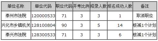 2017年泰州公務(wù)員考試核減、取消職位計劃公告