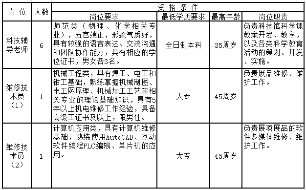 泰州科技館因工作需要,面向社會(huì)公開招聘8名編外用工人員,現(xiàn)將有關(guān)事項(xiàng)在新泰州人才網(wǎng)公布如下: