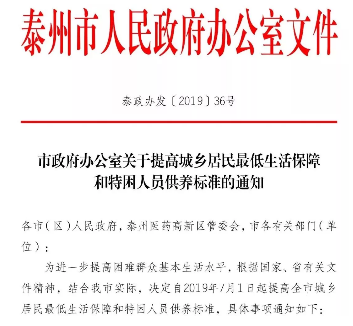 泰州市城鄉(xiāng)低保標(biāo)準(zhǔn)每人每月提高到680元